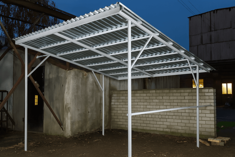 Изготовить навес из профильной трубы можно в сжатые сроки — технология позволяет точно рассчитать нагрузки и обеспечить надежность конструкции. Такие навесы подходят для маленьких участков и просторных парковочных зон.